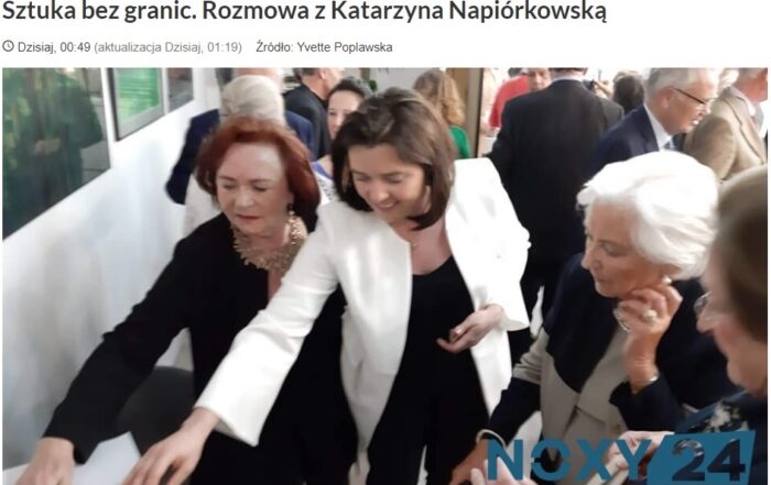 Sztuka bez granic. Z Katarzyna Napiórkowską rozmawia Yvette Popławska Wywiad opublikowano na platformie Noxy    Yvette Popławska:  Primo. Co było myślą przewodnią, bodźcem otworzenia tak prestiżowej Galerii w Warszawie.  Wiemy, że jest w jednym z najatrakcyjniejszych punktów Warszawy?  Katarzyna Napiórkowska: Sztuką zajmowałam się właściwie od czasów licealnych. Potem przyszły studia- [...]
