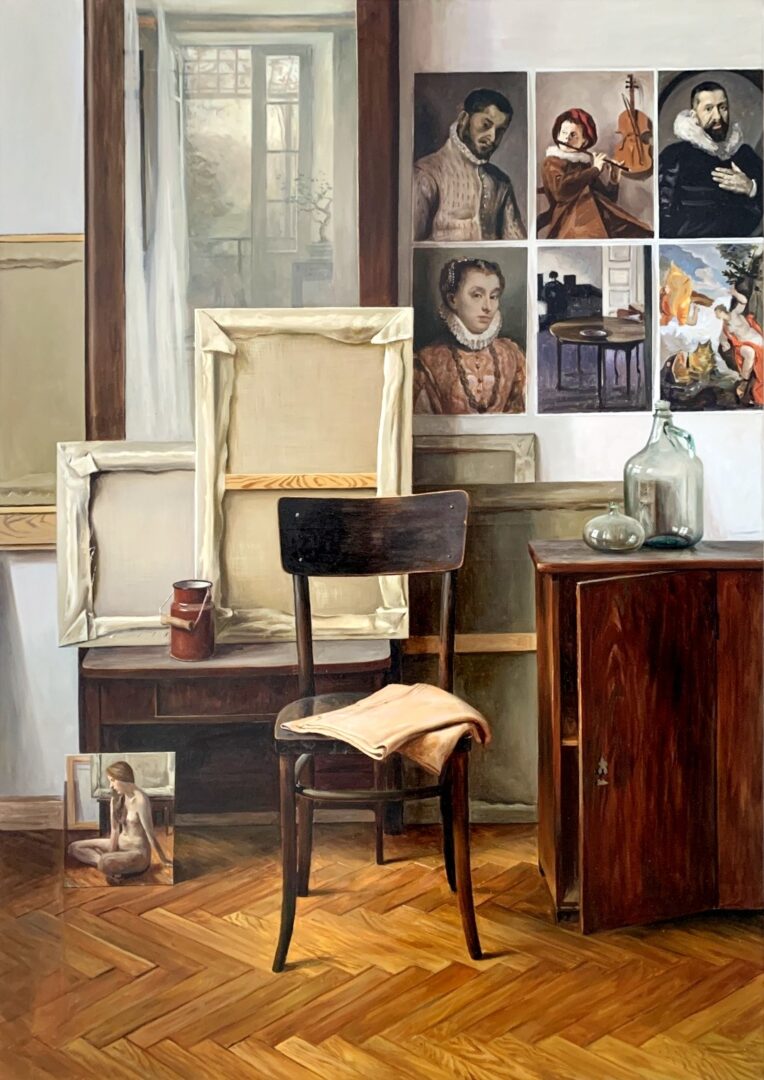 Reprodukcje na ścianach pracowni są jak zaproszenie do uważnego, wręcz uporczywego patrzenia na dzieła mistrzów, w których zakodowane są nie tylko przemiany malarstwa, ale także tajemnica arcydzieł. Ich nieprzenikniona charyzma, która dla pełnego pokory debiutującego malarza staje się także wektorem własnych wyzwań, wyborów i nadziei.
