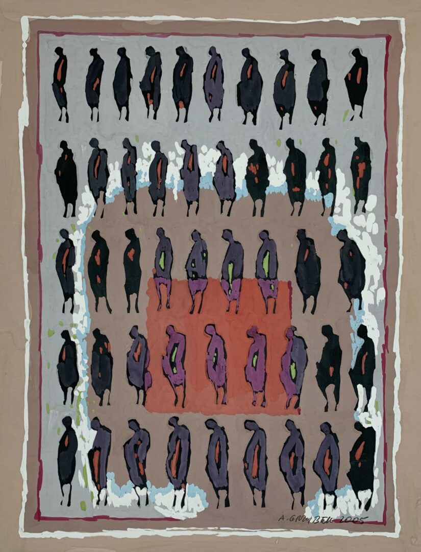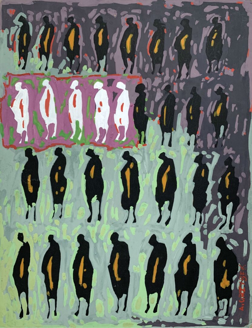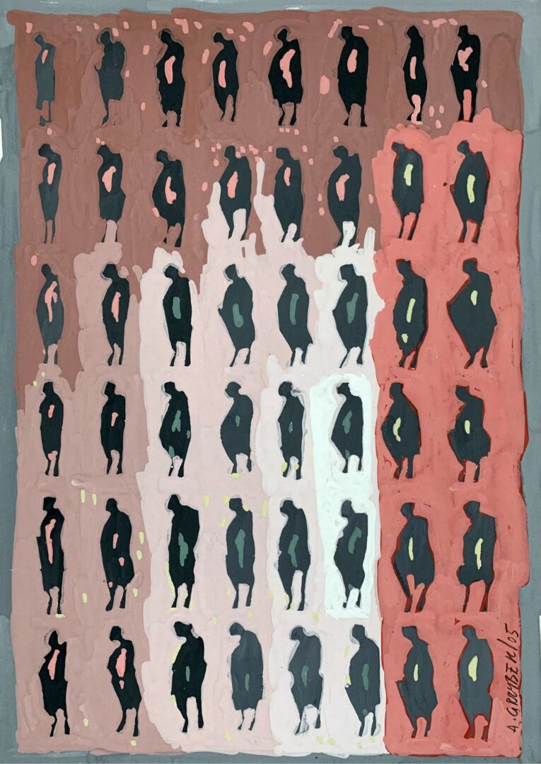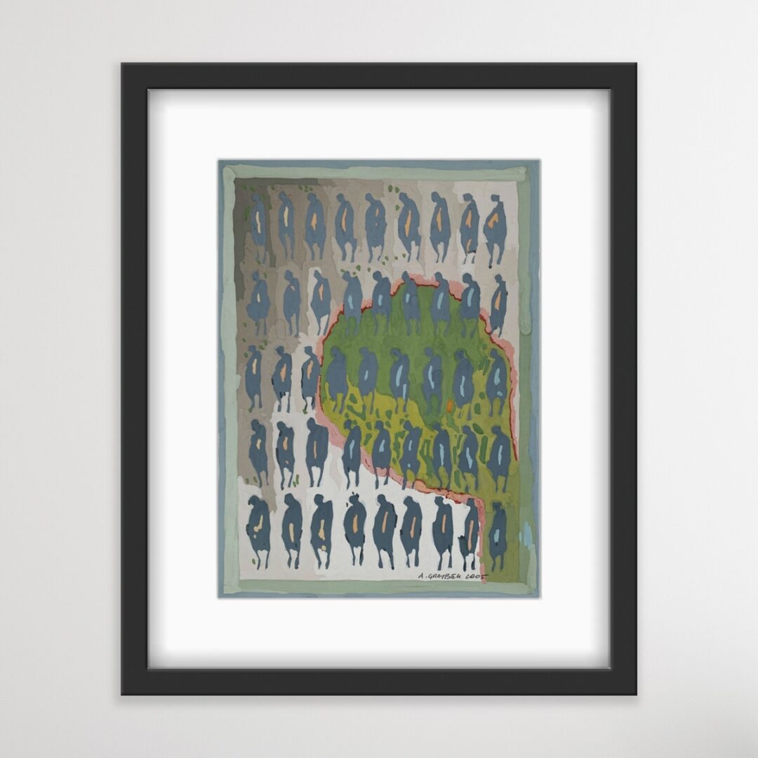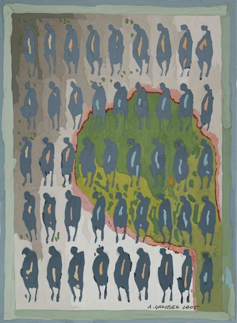 W centrum zainteresowań Aleksandra Grzybka niezmiennie stoi człowiek – nie tyle w portretowym ujęciu, ile jako symbol, znak graficzny uwikłany w sieć emocji i relacji. Artysta ma niezwykłą zdolność do redukowania postaci do jej esencji, multiplikując ją i układając w dynamiczne kompozycje, które mówią o złożoności sfery duchowej. Maluje lęki, radości, samotność i wspólnotę, używając skrótu formy, by wzmocnić przekaz.