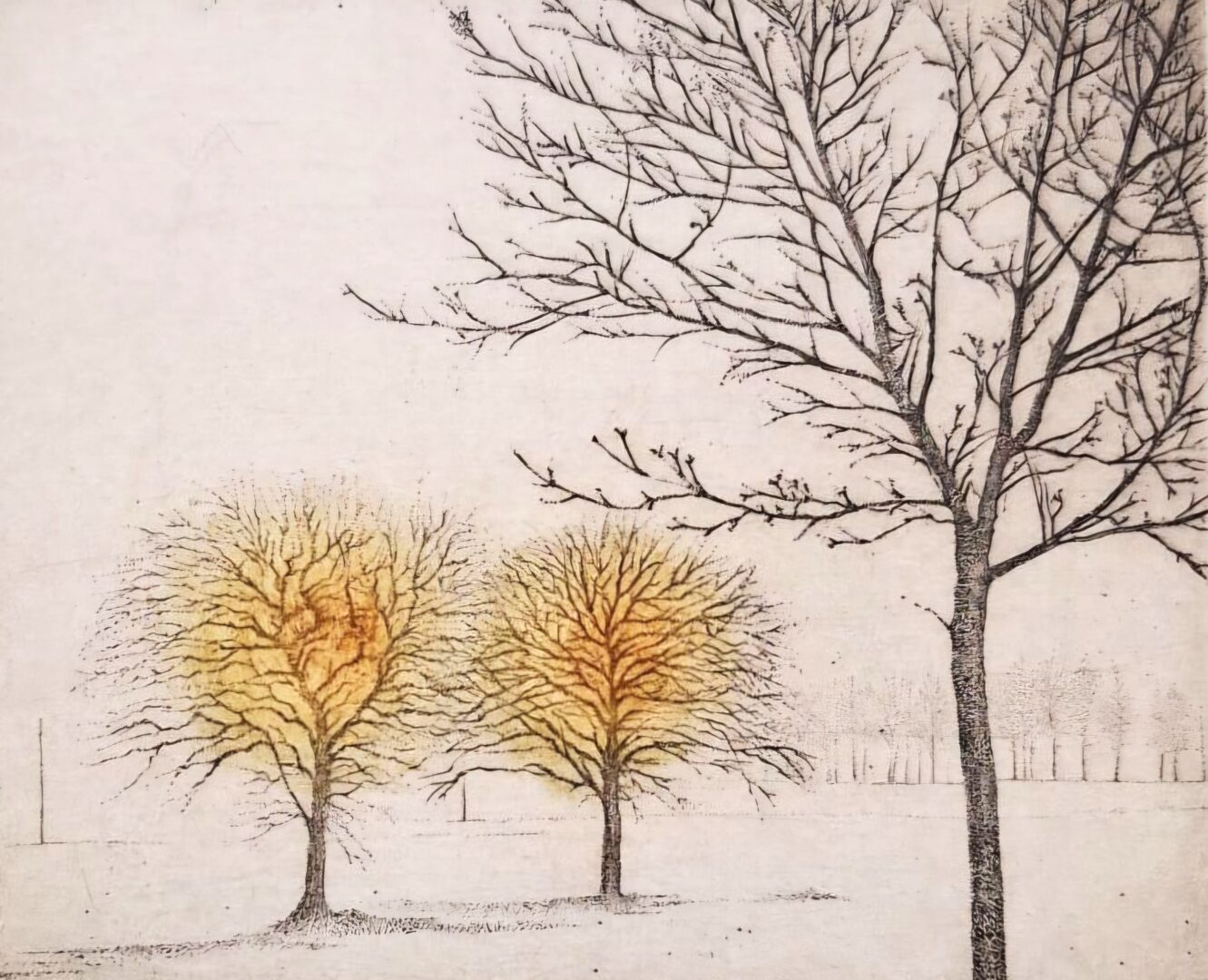 Te prace, wykonane w większości w technice akwaforty, wzbogaconej niekiedy akwatintą, to też swego rodzaju powrót artystki do wspomnień z czasów szczęśliwego dzieciństwa, niezapomnianych widoków rodzinnych okolic, czy Rudy Pabianickiej, gdzie mieszkała jako mała dziewczynka, i gdzie mogła przyglądać się nieograniczonej niczym naturalnej przestrzeni.