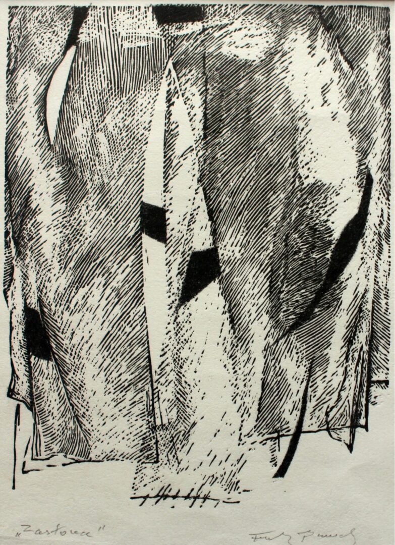 przenikają się formy. Franciszek Bunsch buduje swoje kompozycje dynamiczną kreską i stosuje
