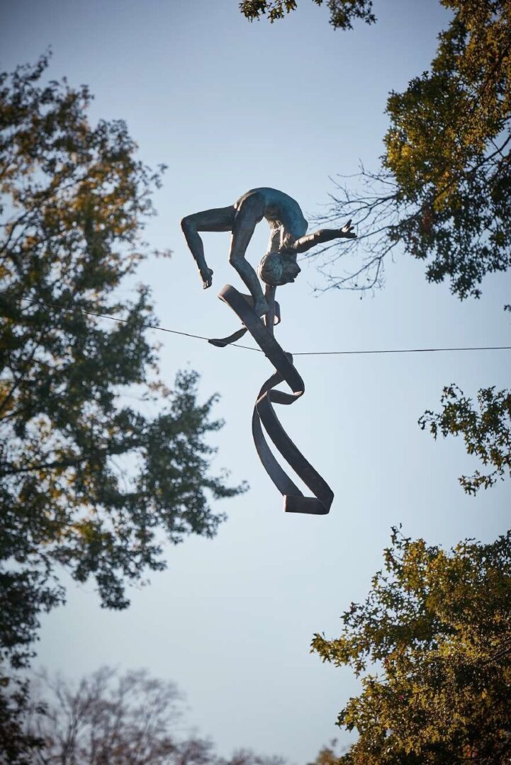 Jerzy Kędziora tworzy rzeźby, które na pierwszy rzut oka wydają się przeczyć prawom fizyki. Postaci sportowców i gimnastyczek zawieszone są w przestrzeni, balansując na rozciągnietej linie. Zaczerpnięte z obserwacji sportowców układy są jakby zatrzymane w czasie. Te niezwykłe, zaskakujące kompozycje zmuszają widzów do zatrzymania się, spojrzenia w górę i zastanowienia się nad tym, co widzą.