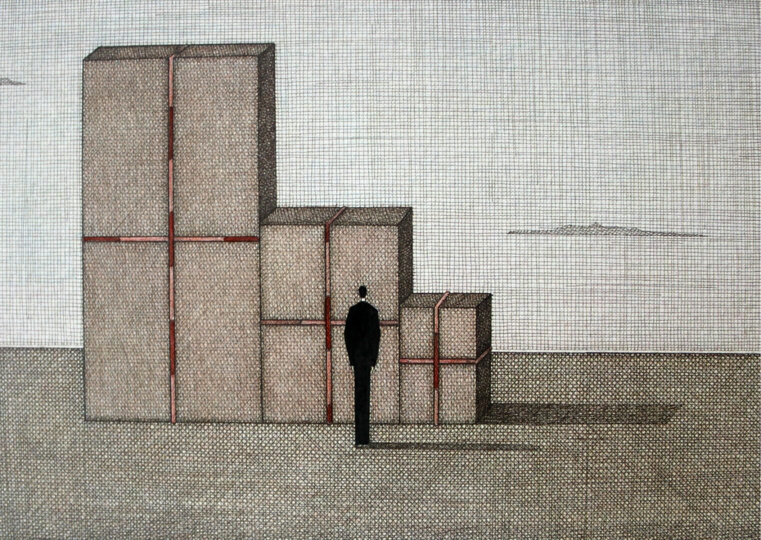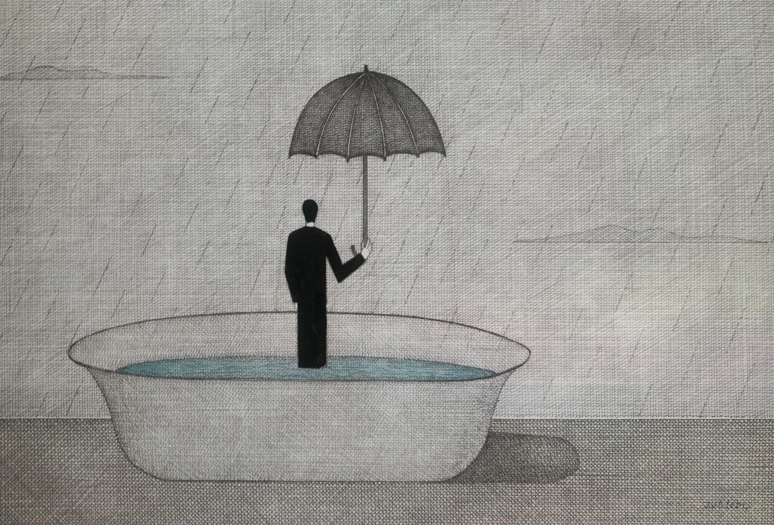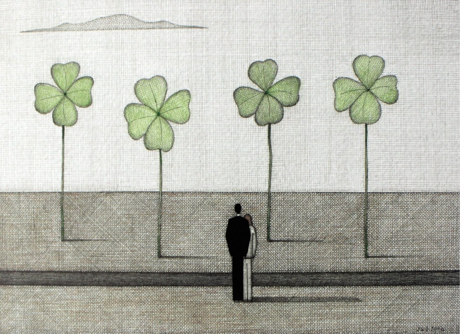 Niekiedy wdzięcznym graficznie motywem jest kostka do gry, ogromniejący ślimak albo po prostu pusty pokój. Co dziwne, mimo iż postać owa zagadkowa stanowi swoisty znak firmowy artystki, identyfikujący większość prac i potwierdzający ich tożsamość, nikt jak dotychczas nie zwrócił na niego uwagi. A przecież jest to postać kluczowa. Czyż nie stanowi alter ego autorki? Można się zastanawiać, na ile stworzona w pełni świadomie, a na ile intuicyjnie… Owszem zdarzało mi się pytać artystkę, w jakim stopniu rysunki czy grafiki są wcześniej „zaprojektowane”, a w jakim stopniu „spływają” tuszem na papier spontanicznie. Odpowiedzi tak do końca nie uzyskałem.