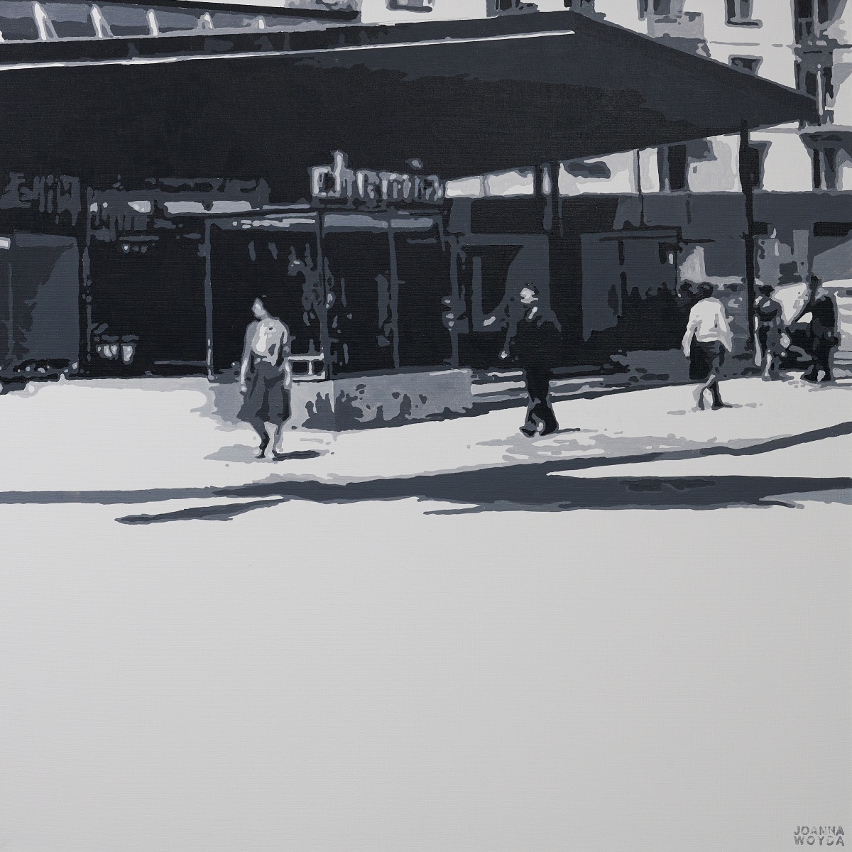 Joanna Woyda (ur. 1981) w swych obrazach zatrzymuje ulotną chwilę, korzystając z osiągnięć współczesnej fotografii w malarstwie. Pozbawiając obrazy zbędnych elementów, sprowadzając tło do abstrakcji artystka skłania widza do skoncentrowania się na przedstawionych postaciach i refleksji.