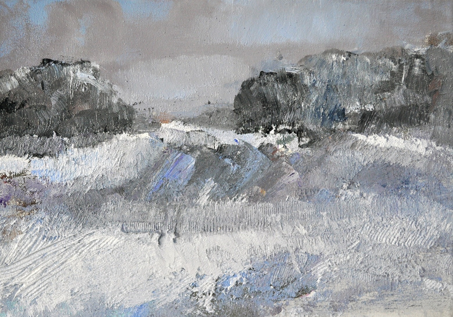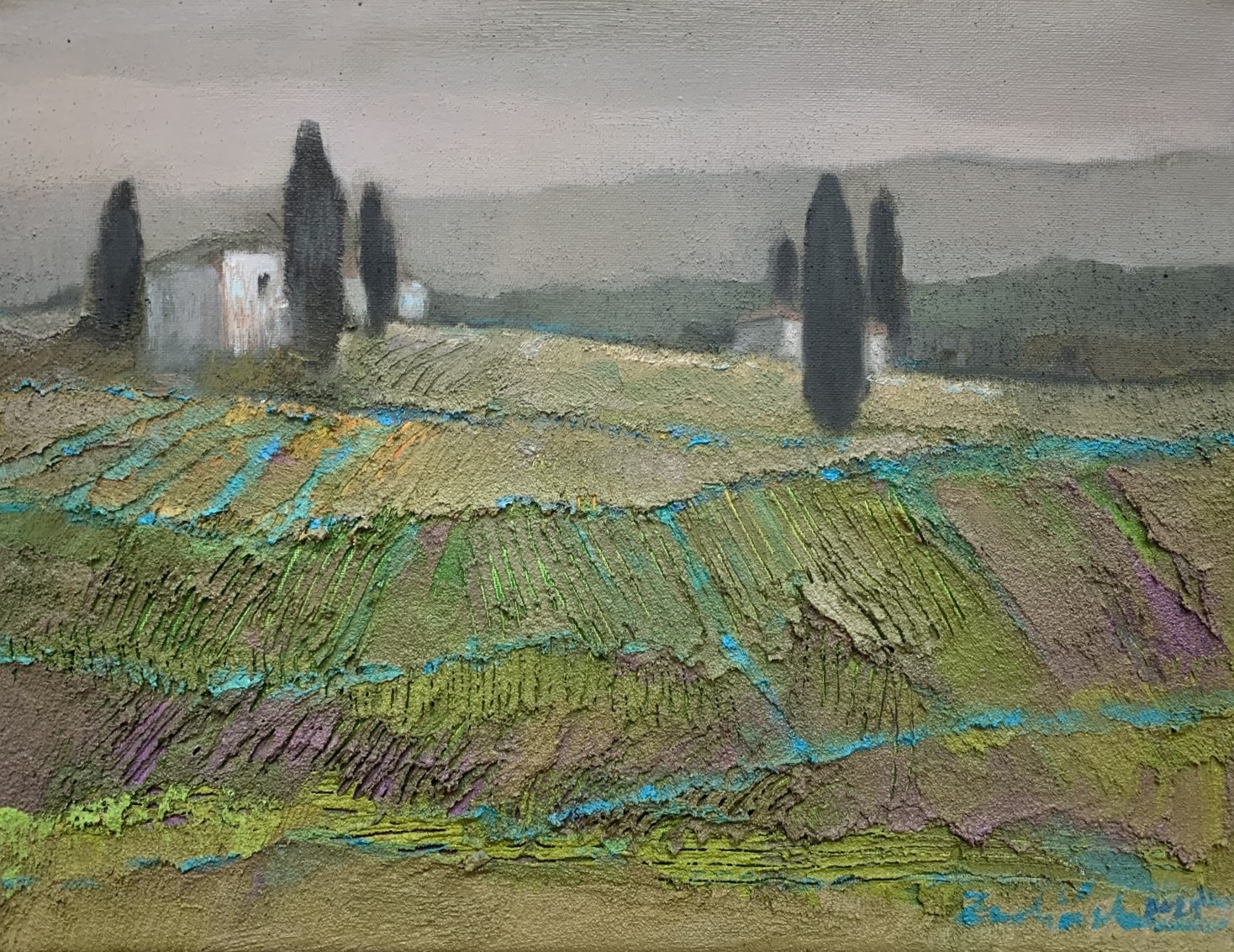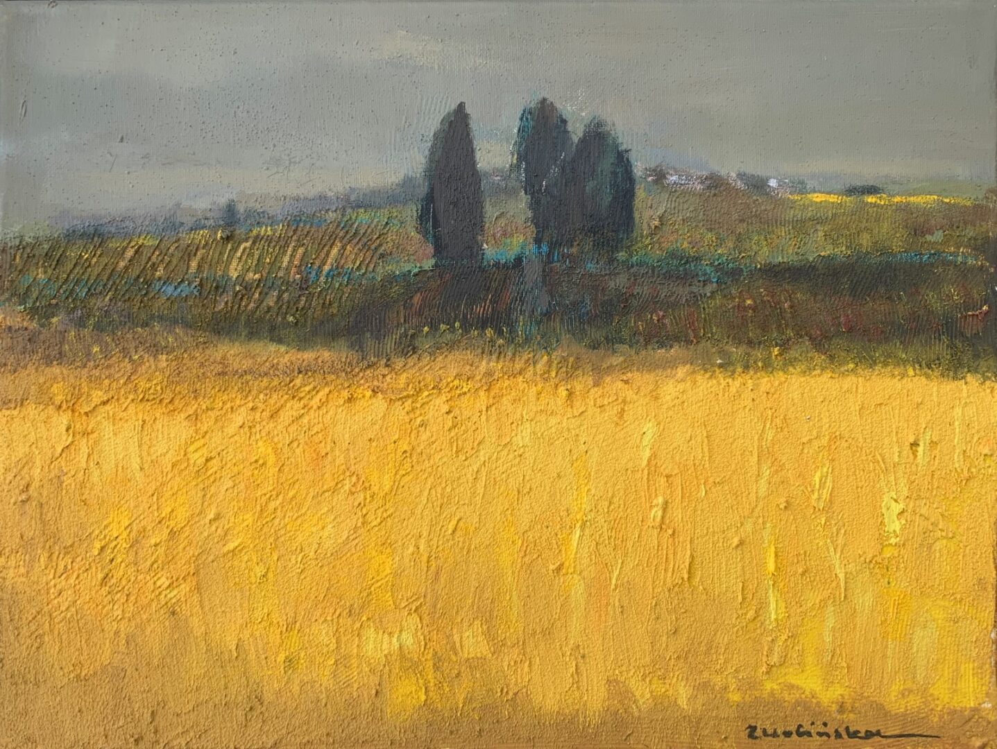 Zwolińska budowała kompozycje wykorzystując obszerne plamy i smugi farby, Czesto korzystała z domieszki piasku, nadając pracom unikalną fakturę. W jej malarstwie pejzażowe motywy wzbogacane są przez chropowatą fakturę materii malarskiej. W ten sposób artystka odnosiła się do natury- przywołujac fakturę ziemi.