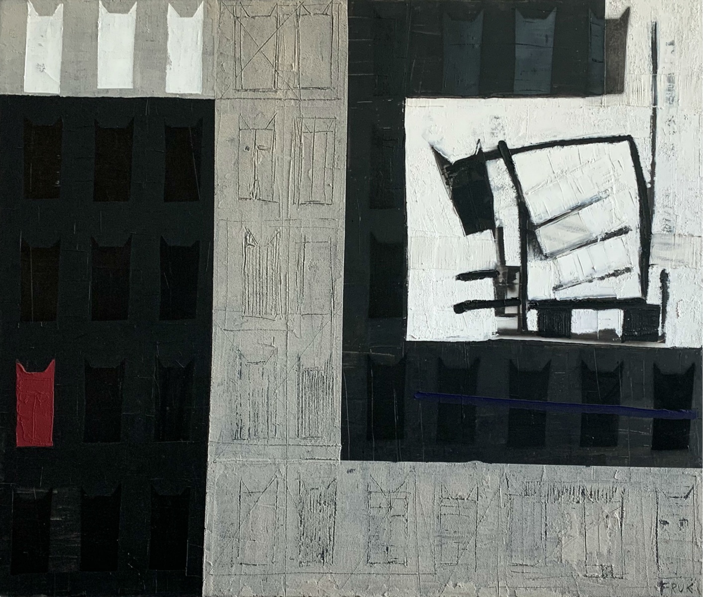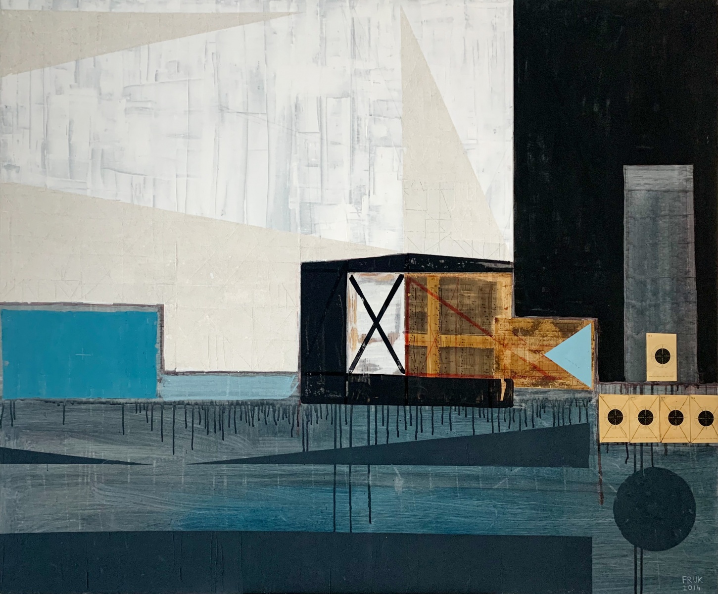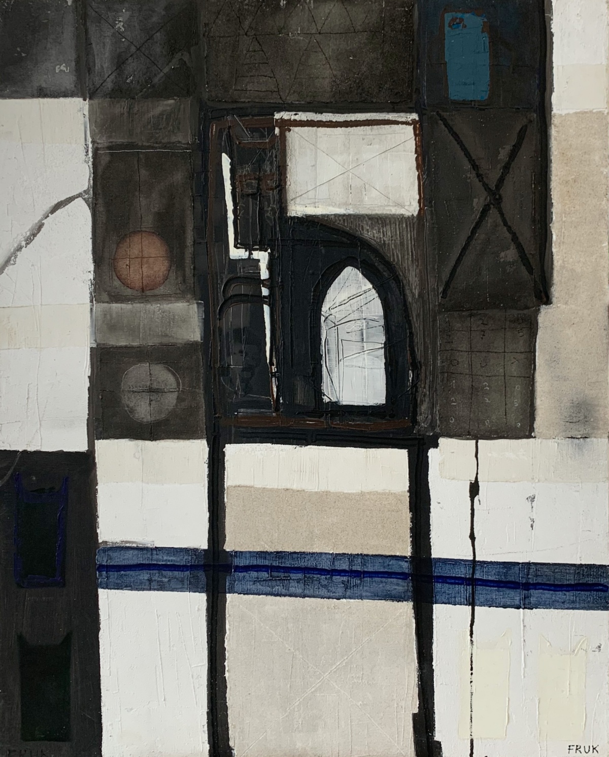 Malarstwo Łukasza Fruczka poszukuje syntezy między dyskretna narracją a ascetyczną formą. Artysta na płótnach łączy techniki i buduje zróżnicowane faktury. Wśród quasi abstrakcyjnych motywów, pojawiają się na wskroś konkretne znaki, odwołujące się m.in. do historii i do istotnych dla artysty miejsc. Ukończył on studia w Akademii Sztuk Pięknych w Gdańsku. W 2001 r. uzyskał dyplom z wyróżnieniem z malarstwa w pracowni prof. Hugona Laseckiego i prof. Henryka Cześnika oraz z rysunku w pracowni adiunkta II st. Romana Gajewskiego.