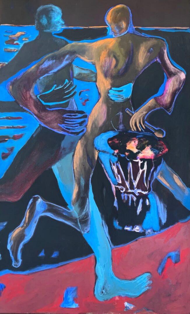 Na wystawie praca: Cykl Fragmenty minionych lat, Heraklion, olej na płótnie, 200 cm x 150 cm, 2025 rok