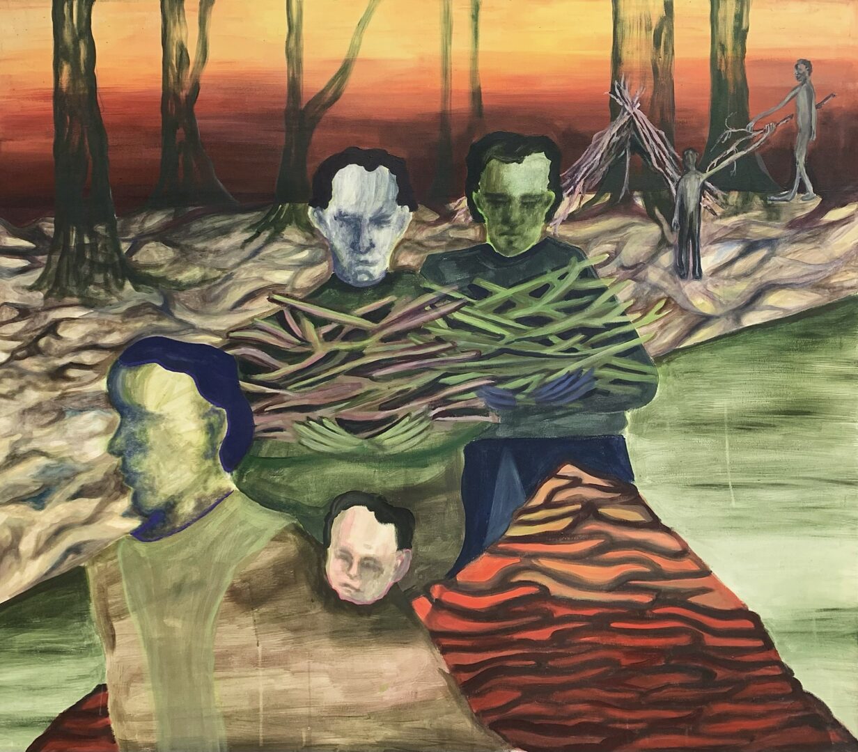 na wystawie: „Autoportret lustrzany 1”, olej na płótnie, 150×200 cm, 2024