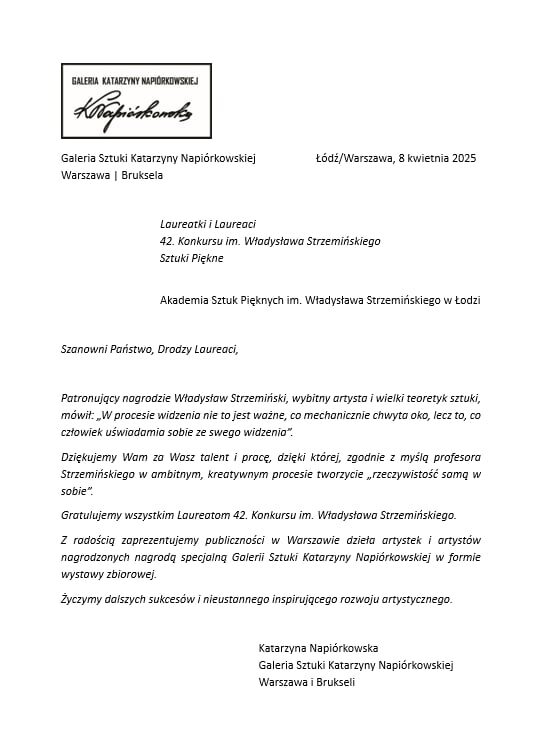LIST KATARZYNY NAPIÓRKOWSKIEJ DO LAUREATÓW
