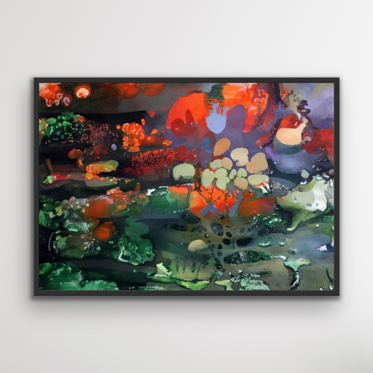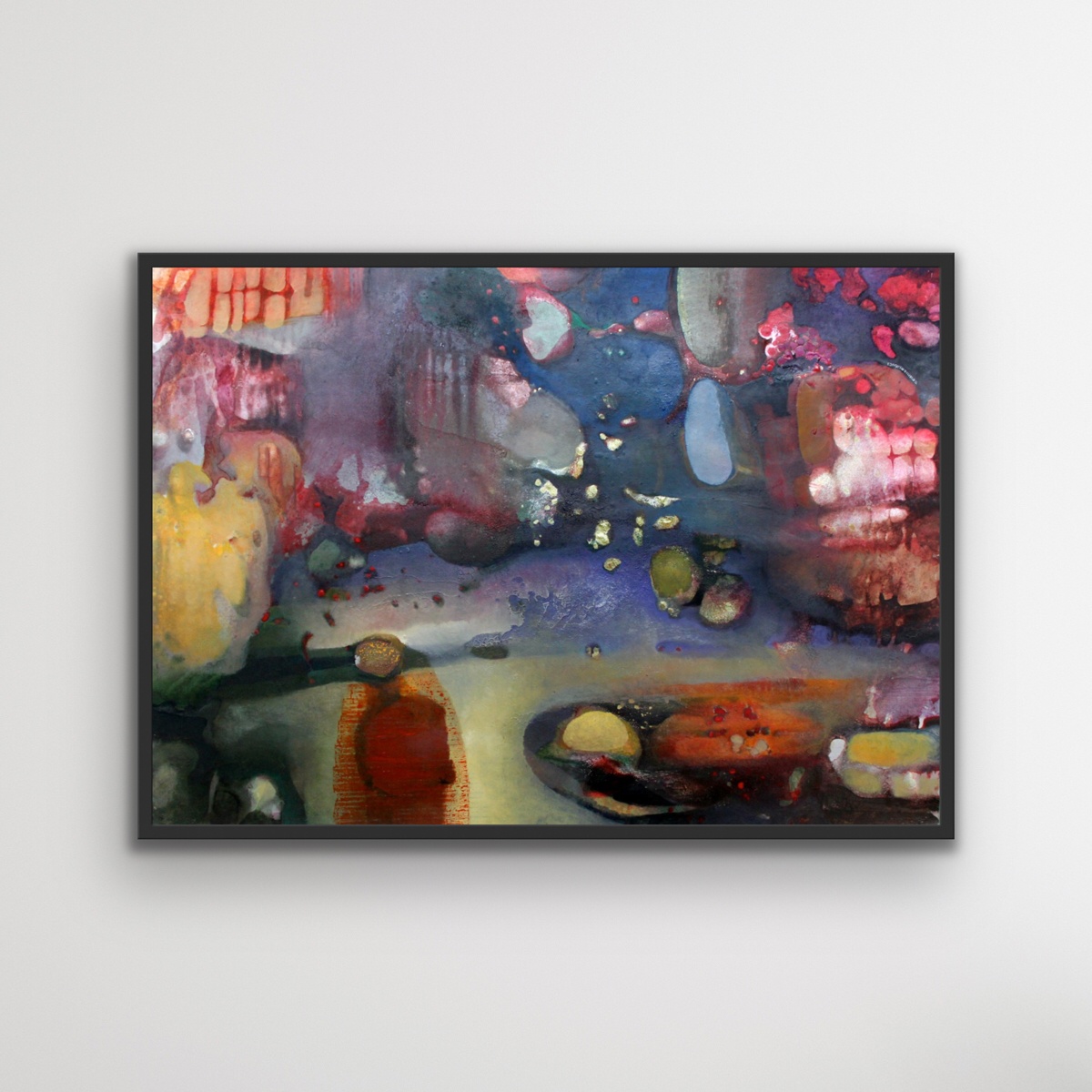 Kształty wywodzą się najpewniej ze świata materii – jak powiększone pod mikroskopem, poddane uważnej obserwacji cząstki. Barwne profuzje wypełniają całą powierzchnię obrazu, tworząc bezgraniczny zapis zmysłowości. Materialność i cielesność, z której czerpią prowadzi do drugiego, dyskretniejszego, lecz jeszcze bogatszego świata- przestrzeni przeżyć duchowych.