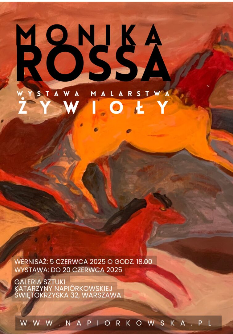 Obrazy Moniki Rossy charakteryzują się bogactwem barw, śmiałymi kontrastami i wyczuwalną energią. Każde płótno to próba uchwycenia nie tylko formy, ale i emocji, które towarzyszą spotkaniu z żywiołem – czy to natury, czy własnej wyobraźni. Jej prace były prezentowane na wystawach w Stanach Zjednoczonych, Polsce i Hiszpanii, a także zdobią prywatne i publiczne kolekcje na całym świecie. Wszystkie prace na wystawie pokazane są w Polsce po raz pierwszy.